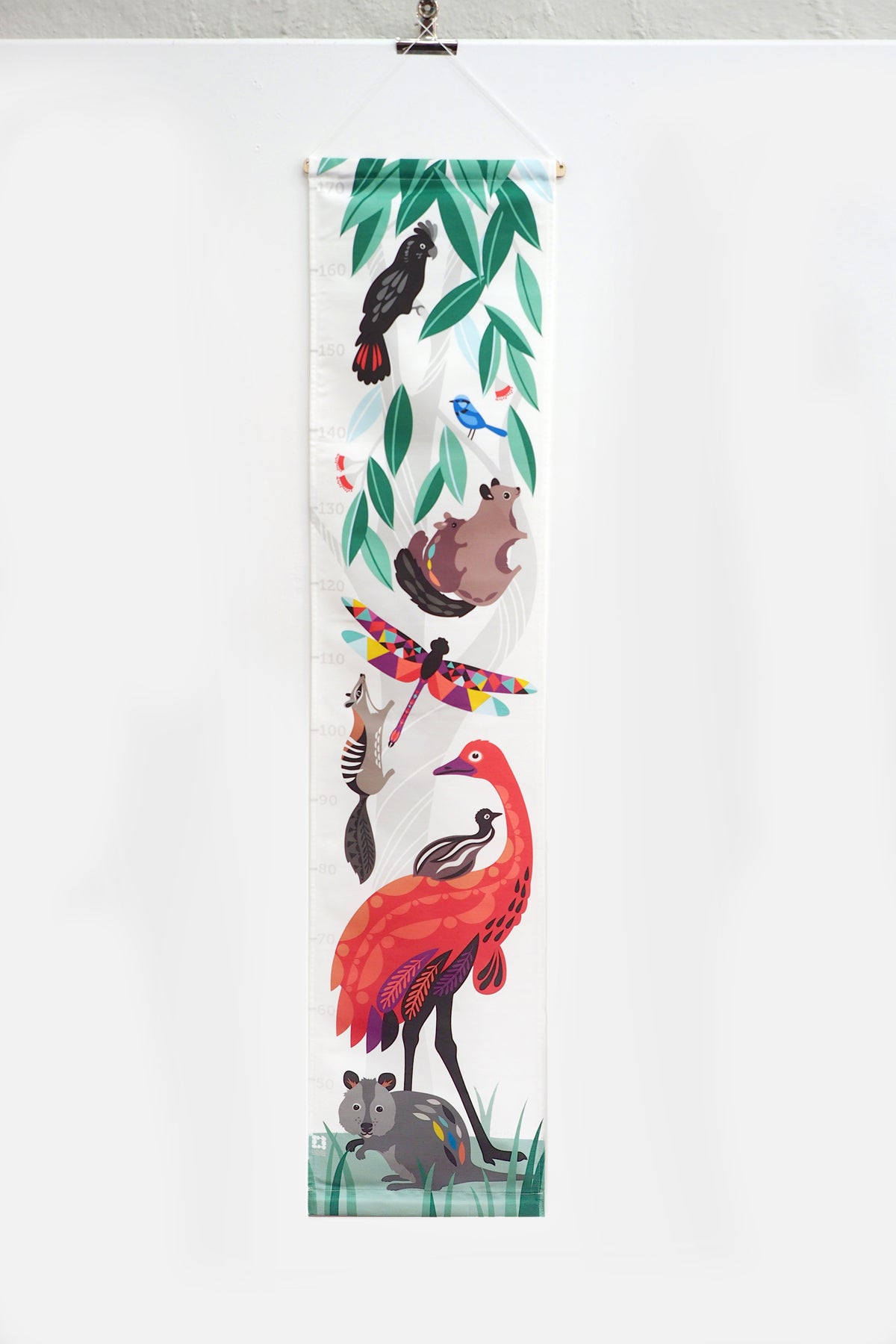 Height chart designed to hang 50cm from the bottom edge to the floor. This makes a great decorative panel in your home as well as a height chart. 55% Linen and 45% Combed cotton fabric. With String and MDF baton.