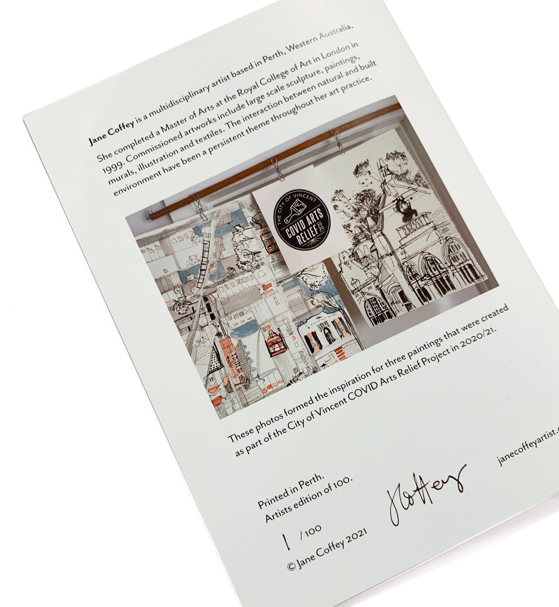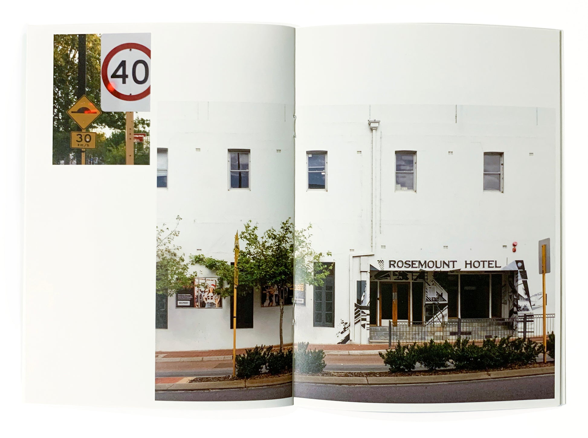 As part of my project for the City of Vincent in 2020 I created a limited edition book showing some of the original photographs I took on walks during COVID lockdowns. These are quiet observations and reflections on a space that was suddenly empty of cars. Attention was drawn to how our urban landscapes is dominated by needing to control vehicles, parking measures, signage, speed humps, road markings, barriers, curbs. These all add noise to the landscape that should be our community refuge.